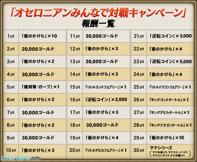 【オセロニアンみんなで対戦キャンペーンの報酬一覧】