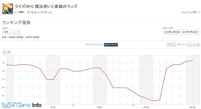 また、トップ10圏内にコロプラ<3668>の『クイズRPG 魔法使いと黒猫のウィズ』と、バンダイナムコエンターテインメントとCygamesの『アイドルマスター シンデレラガールズ スターライトステージ』が復帰した。『黒猫のウィズ』は、1月16日18時より開始(関連記事)した新イベント「魔轟三鉄傑 対 地獄三十六歌仙」にの登場する精霊たちがガチャに登場していることを材料に上昇を続けている。なお、1月19日16時からはストーリークエスト「魔轟三鉄傑 対 魔刃五影将」を開催中だ。