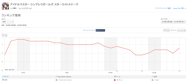 【Google Playランキング(1/27)】新アイドル追加の『デレステ』が10位→7位 『BLAZBLUE』コラボの『セブンナイツ』が5ランクアップで18位