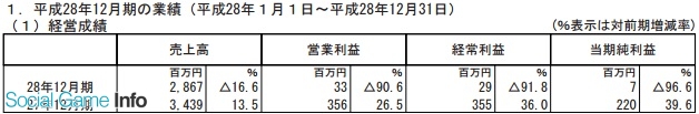 2017年12月期の業績は、売上高30億円(前期比4.6%増)、営業利益1億1000万円(同228.2%増)、経常利益1億0800万円(同270.5%増)、最終利益6500万円(同763.0%増)を見込む。