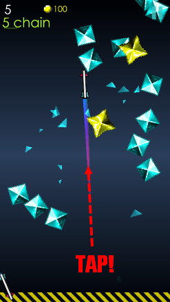 画面端から棒状の物体「スティック」が回転しながら飛んでくるので、タイミングよくタップします(タップする場所はスクリーン内のどこでもOK)
