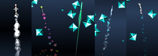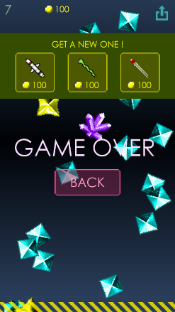 すると「スティック」の頭の向きに合わせて真っ直ぐ飛んでいきます。スティックが宝石に当たると得点です。一度に複数の宝石を壊したり、ミスせず連続で当てていくと、コインが貯まっていきます。