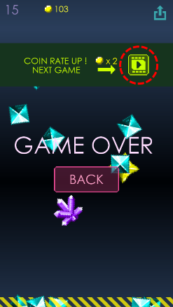 動画広告を見ると、次のゲームで獲得出来るコインの枚数が「2倍」になります。