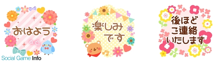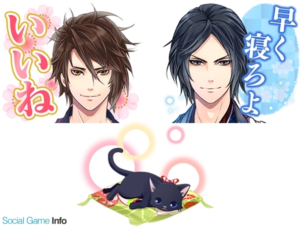 今回、 2017年3月にサービスを開始いたしました新作恋愛シュミレーションゲーム『恋愛幕末カレシ~時の彼方で花咲く恋~』のデザインを無料にて配信。 その他、 デコメ(R)で人気を集めた「しりまる」や「しろくろさん」など、 バリエーション豊富な7種類のステッカーパックが登場いたします。 いずれも、 「ありがとう」や「OK」など、 日常の会話で気軽にご使用いただけるラインナップになっております。