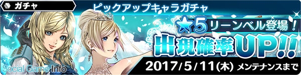 新規キャラクターとして END OF ETERNITY より「リーンベル」が参戦する。期間中、その「リーンベル」の出現確率が大幅に UP する。実施期間は、5月11日メンテナンスまで。