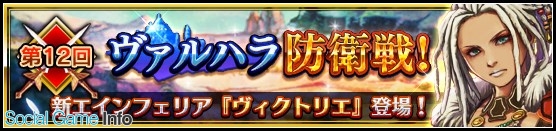 「第12回 ヴァルハラ防衛戦」では、新たなエインフェリア「ヴィクトリエ」を仲間にするためのアーティファクトが登場する。イベント内では、ヴィクトリエの魂の律動を見ることができるが、仲間にするためにはオーディンメダルと交換でアーティファクトを献上する必要がある。なお、クエストでは「闇属性」「氷属性」の攻撃が有効に働くようだ。