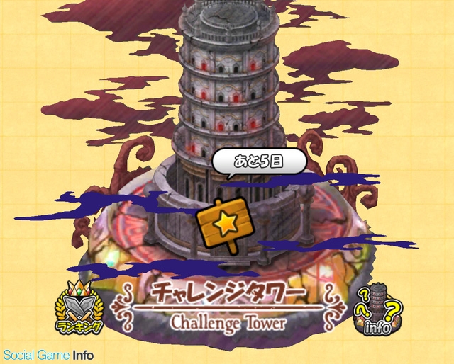 期間限定ステージ「チャレンジタワー」が登場する。通常のステージと異なる特殊な条件のバトルに挑み「パールオブジェ」を集めて、達成報酬獲得を目指そう。今回の達成報酬としては、「バナナクレープ密林」のBGMを聴くことができる「密林BGM」「密林BGM・Boss」「密林BGM・乱入」を用意している。