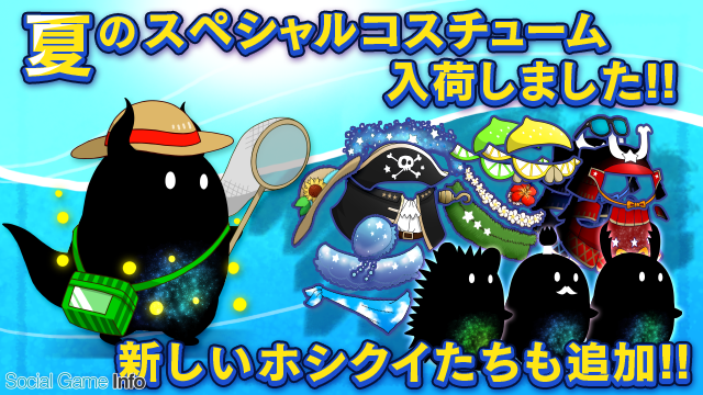 ライドオンジャパンは、スマートフォンゲームアプリ『ホシクイ』において、新エリアの追加や夏のスペシャルコスチュームを追加するアップデートを7月7日に実施したことを発表した。