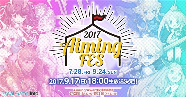 Aiming<3911>は、9月8日、超大型最新作タイトル『CARAVAN STORIES』がオンラインイベント「AimingFES 2017」(9月17日放送予定)で実施予定の「第1回Aiming Awards」生放送に参加することが決定した。また、キャンペーン企画第2弾としてフォロー&RTキャンペーンも開始した。