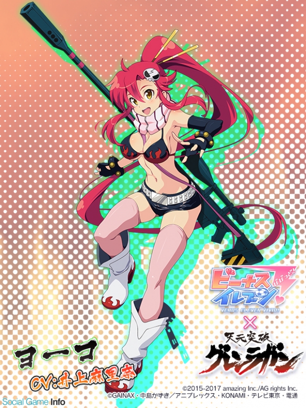 アメージングは、『ビーナスイレブンびびっど!』(略称、『びびび』)にて、アニメ「天元突破グレンラガン」とのコラボイベント「天元突破ビビッドビーナス」を、9月24日~9月30日までの期間限定で開催することを発表した。コラボイベント中には、限定選手が手に入るイベントスカウトや、イベントをプレイして獲得したポイントでチャレンジできるボックスガチャタイプのミラの泉が登場する。