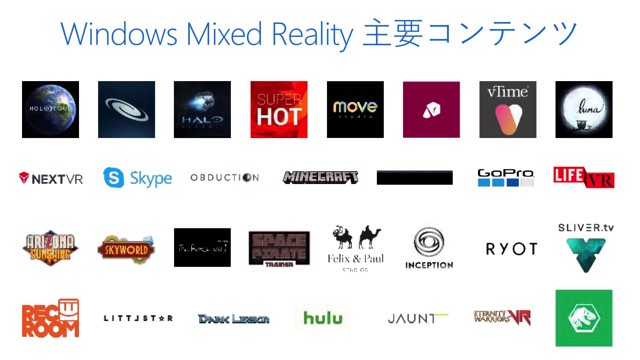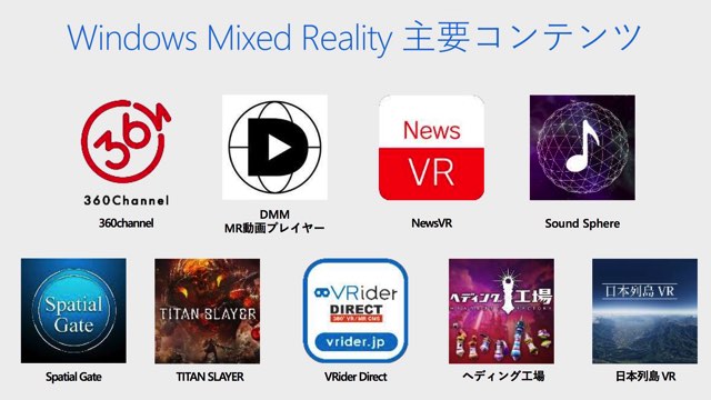 先日のアップデートの段階でWindows Storeには既にMRコーナーを立ち上げた。その中には『360チャンネル』、DMMなどの動画コンテンツや、コロプラの『TITAN SLAYER』やジェムドロップの『ヘディング工場』など、他のプラットフォームでも人気の高いコンテンツを取り揃えていくという。