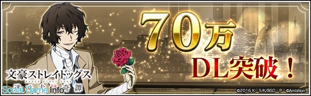 アンビションは、本日(12月18日)、12月14日より配信開始した爽快異能スリングパズル『文豪ストレイドッグス 迷ヰ犬怪奇譚』が70万ダウンロードを突破したことを発表した。また、それに伴い、70万ダウンロード突破記念キャンペーンを開始した。