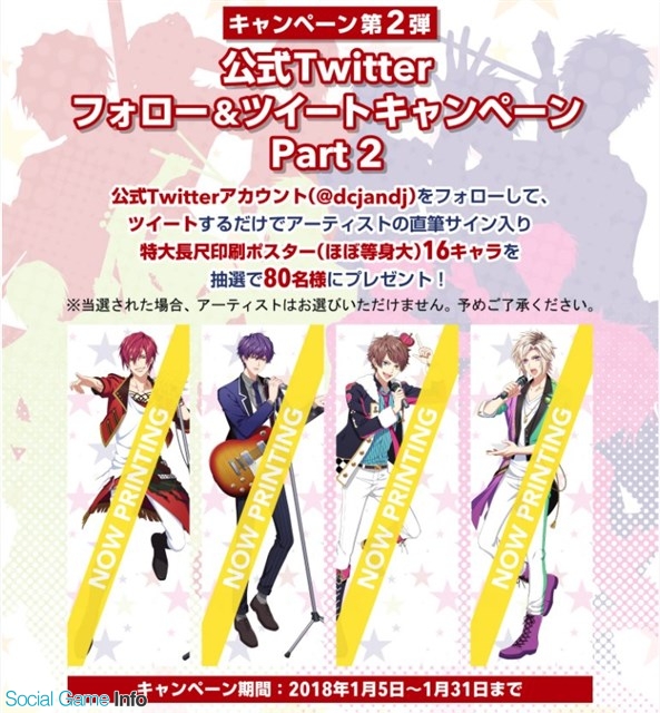アスガルドは、2018年にサービス開始を予定しているバンドマン応援ゲーム『DYNAMIC CHORD JAM&JOIN!!!!』(略称、『ダイジャム』)において、プレゼントキャンペーン第2弾を実施することを発表した。