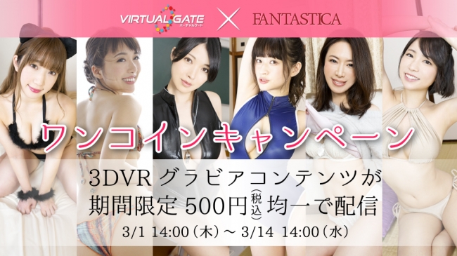 施設設置型VRコンテンツプラットフォーム「VIRTUAL GATE」を展開するテクノブラッドは、グラジオラスが提供するFANTASTICAの3DVRグラビア作品を期間限定でトライアル版を除く全作品が500円均一のワンコインキャンペーンを開始した。