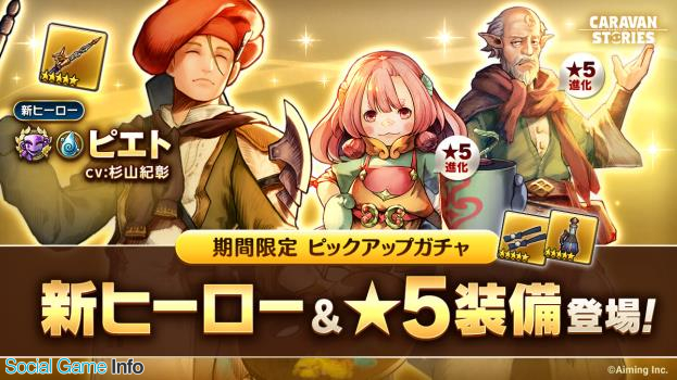 Aiming<3911>は、5月8日、『CARAVAN STORIES』において、★5装備が確定で手に入る「種族ガチャ」を開催したと発表した。