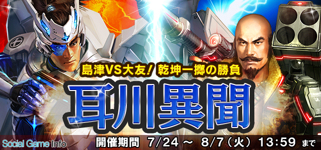 コーエーテクモゲームスは、7月24日、フォーメーションバトルRPG『信長の野望 201X(ニマルイチエックス) 』において、イベント「耳川異聞(みみがわいぶん)」を開催したと発表した。