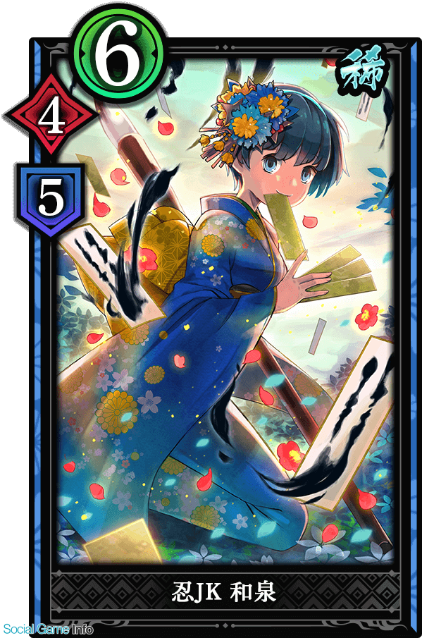 昨年末のイベントで好評だった忍JK振袖バージョンの四人衆が、期間限定イベントで復活! チャンピオンシップで1日1回バトルを行うと、4種類の中からランダムな振袖JK札1枚が手に入る。どの属性でもバトルの中核になりえる稀札がゲット出来る。このチャンスにチャンピオンシップをプレイし、彼女たちをゲットしよう! ※能力は通常の札と変わりません。