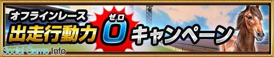 期間中、オフラインレース出走時の行動力がゼロになる。行動力を消費せずに同時開催中のオフラインレースに挑戦できるので、この機会に挑戦しよう!