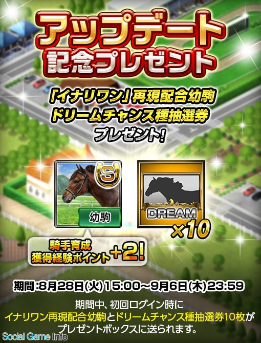 ▼「イナリワン」再現配合幼駒プレゼント!大型アップデート記念ログインプレゼント