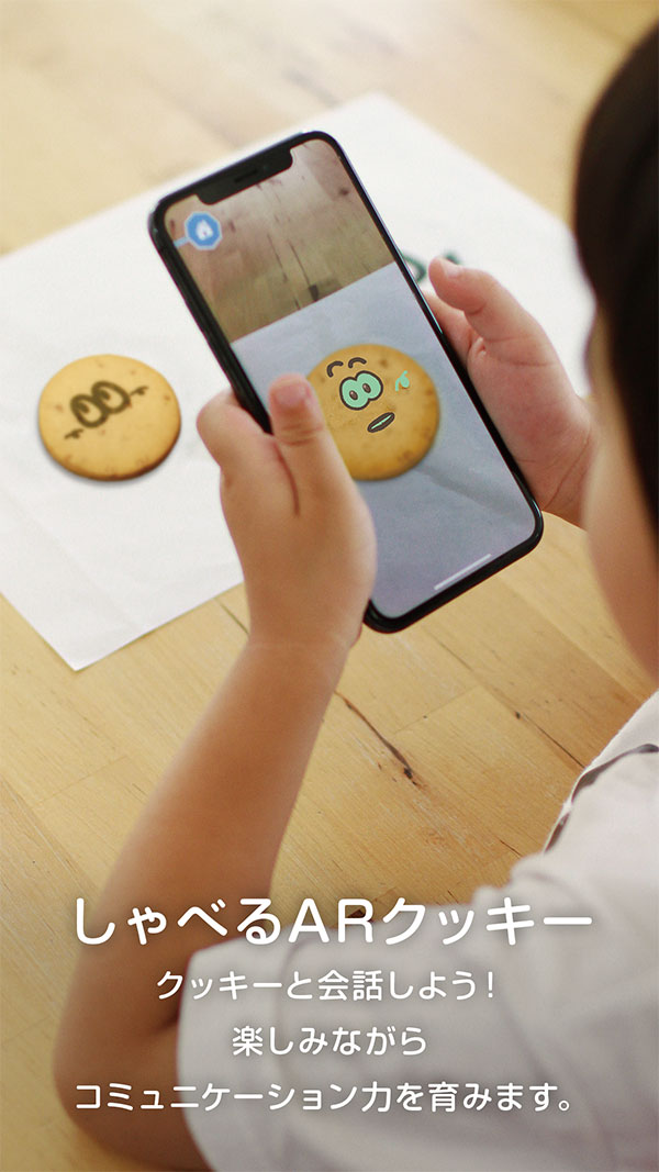 同アプリは、ARのあそび道具として、専用クッキーを使ってクッキーと会話ができる「しゃべるARクッキー」とリトルプラネットなどで描いたぬりえが飛び出る「ARぬりえ」といった2つのコンテンツが無料で楽しめるという。また今後も新しいARのあそびを追加する予定とのこと。