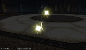 三日月蹴りで敵を蹴り飛ばしながら距離を取り、空に月の力を込めた矢を放つ。放たれた矢は光球となり、宙で静止して無数の光弾を振り撒く。