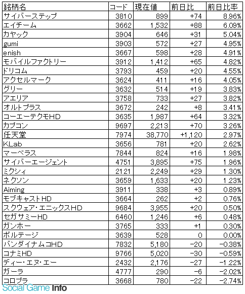 6月5日の東京株式市場では、日経平均株価は6日ぶりに反発し、前日比367.56円高の2万776.10円で取引を終えた。米国の貿易摩擦の激化懸念がやや和らいだこともあり、前日の米国市場が買われたことで、国内市場も朝方から買いが先行した。そうした中でゲーム関連株の動きを見てみると、サイバーステップ<3810>やNJHD<9421>が大幅高したほか、エイチーム<3662>やカヤック<3904>、モバイルファクトリー<3912>など幅広い銘柄が買われた。モバファクは、主力タイトルの『駅メモ!』がApp Store売上ランキングで初のトップ30入りを果たしたことも評価材料となっているようだ。