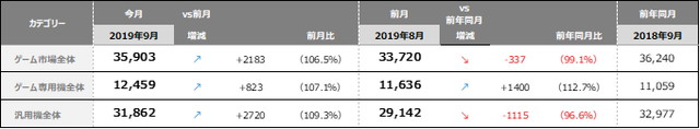ゲームエイジ総研は、昨日(10月10日)、「Monthly Game Trend Ratings Plus(マンスリー・ゲーム・トレンド・レイティング・プラス)」第96号(2019年10月号)を公開し、9月のゲーム市場全体のユーザー規模は前月比218万人増の3590万人だったとする調査結果を発表した。前年同月比では33万人減った。内訳をみると、ゲーム専用機が前月比82万人増、前年同月比では140万人増と好調だった。『モンスターハンターワールド:アイスボーン』など注目作が多数発売されたことが要因だという。他方、汎用機は、前月比で272万人増、前年同月比では112万人減だった。前月比ではアクティブ数が回復しており、 9月のゲーム市場全体を盛り上げたとコメントしている。