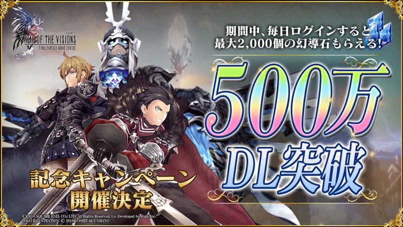 スクウェア・エニックスは、12月5日、『WAR OF THE VISIONS ファイナルファンタジー ブレイブエクスヴィアス 幻影戦争』(FFBE幻影戦争)で、500 万ダウンロードを突破したと発表した。