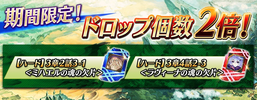 ●『ラヴィーナ』『ミハエル』の魂の欠片ドロップ個数 2 倍!