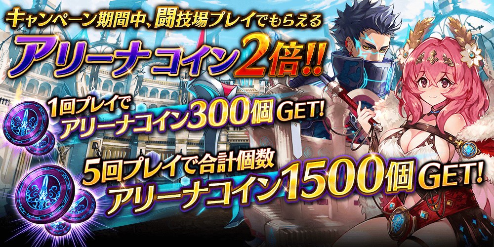 ●闘技場プレイで獲得できるアリーナコインが 2 倍!