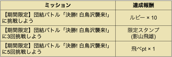 ■団結バトル「決勝! 白鳥沢襲来!」開催概要