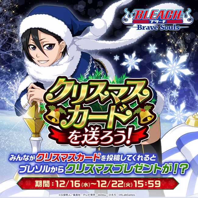 さらに、 投稿されたクリスマスカードの一部は、 12月27日(日)の生配信番組「年忘れ!BLEACH Brave Souls “卍解”生放送 年末スペシャル2020!!」内で紹介される。