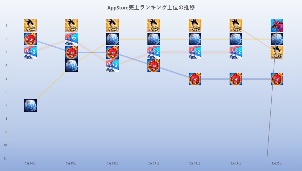 トップ10圏内では、スクウェア・エニックスとアカツキ<3932>の『ロマンシング サガ リ・ユニバース』が、前日から3ランクアップで6位に浮上。『ロマサガRS』は、5月10日より開催している「GW記念 Ultra DXガチャ ダーハオ編」が、引き続き好調のようだ。