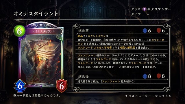 また、新カード「オミナスタイラント」「忌まわしき再誕」「ギガンティックブロッサム」「アブソリュート・トレランス」「輪廻の女神」の情報も公開した。