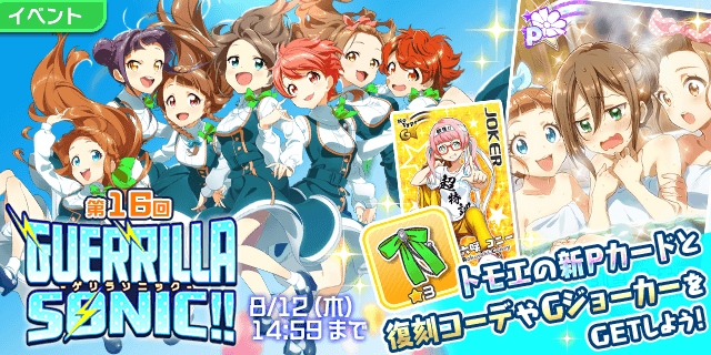 イベント「第16回 GUERRILLA-SONIC!!」を開催中です。通常曲やメドレー曲をプレイすることで得られる「SONIC-Energy」を使い、イベント曲をプレイすることで集めた累計ポイントで報酬の獲得を目指すイベントです。