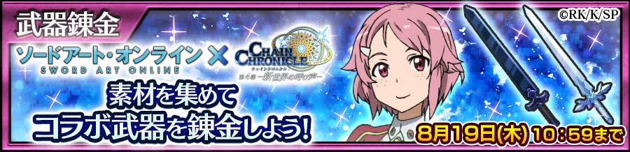 セガ、8月6日、『チェインクロニクル 第4部 ―新世界の呼び声―』で、アニメ『ソードアート・オンライン』とのコラボレーションイベントの開始を発表した。