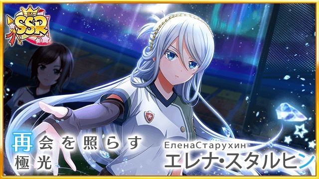 ハチナイプリンセススカウトで、 ロシアから来た選手、 SSRエレナ・スタルヒン(CV. 上坂すみれ)とSSRアメリア・サンダース(CV. 東山奈央)が登場する。 SSRエレナ・スタルヒンは、 URにシンデレラ覚醒が可能な選手となる。