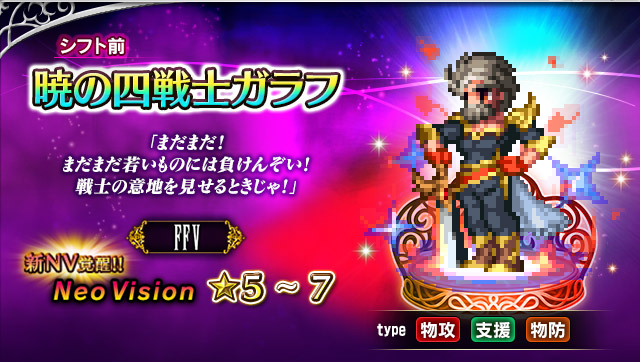新たな Neo Vision ユニットとして、 「召喚士レナ」 と 「暁の四戦士ドルガン」 が登場した。さらに、既存ユニットの 「暁の四戦士ガラフ」 が Neo Vision 覚醒解放した。