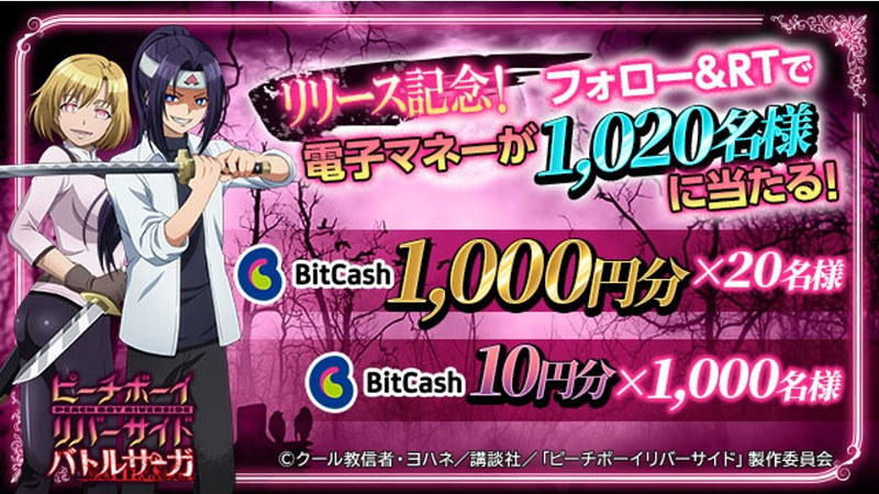 CTWは、G123『ピーチボーイリバーサイドバトルサーガ』のリリースを記念し、Twitterでビットキャッシュプレゼントキャンペーンを開始した。