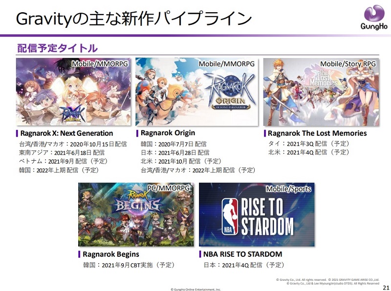 ・『Ragnarok The Lost Memories』:タイで2021年第3四半期中にリリースし、北米は第4四半期中にリリースする予定。