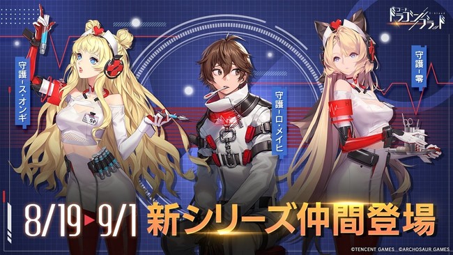 新ストーリーの公開に合わせて、 守護シリーズに新しい仲間が登場する。 第1弾は「守護・零」、 「守護・ロ・メイヒ」、 「守護・ス・オンギ」の3名。8月19日(木)から9月1日(水)に開催される期間限定ガチャで抽出率がアップする。さらに、 初回の10連ガチャでは、 ★5以上の仲間を必ずゲットできる特典付き。