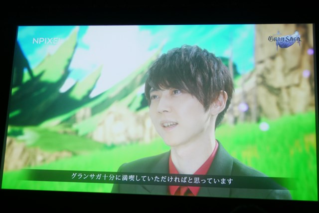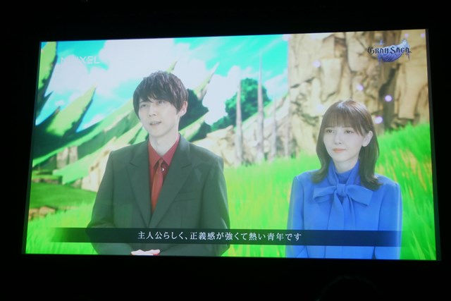 梶さん「色んなキャラクターとのドラマが数多く用意されています。この作品に欠かせないのがグランウェポンというものなんですが、本当にかっこいいんです。台詞もそうですが、グラフィック、そして音楽。個人的に、下村陽子さんの楽曲が非常にゲーマーとしてテンションの上がる部分で、それを聞いて、この作品に関わりたいと思った要素の一つといっても過言ではないくらい個人的にも楽しみにしている部分なので、皆さんも、素敵なグラフィック、音楽、ドラマ、我々のお芝居も含めて、『グランサガ』を十分に満喫していただければと思っています」