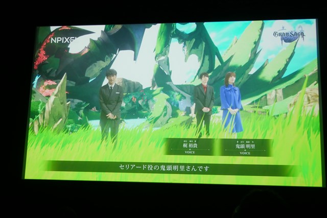 ショーケースも終盤となったところで、『グランサガ』プロダクトマネージャーの鈴木宏志氏が登場。ゲームのさらなる魅力として、先に登場した2人以外にも多くの豪華声優陣が参加していることを明かした。