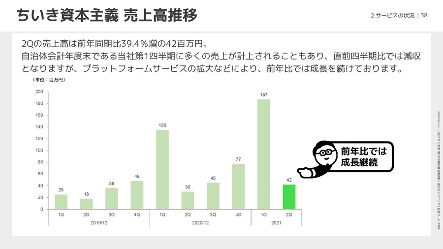 自治体会計年度末である第1四半期に多くの売上が計上されることもあり、QonQ減収となった。プラットフォームサービスの拡大などにより、前年比では成長を続けている、としている。