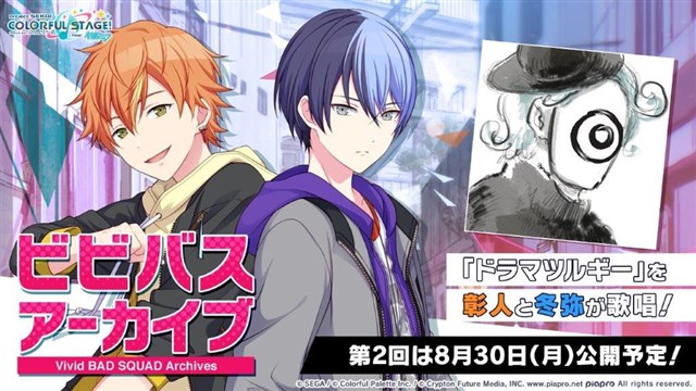 8月30日に「ビビバスアーカイブ#2」を公式YouTubeチャンネルにて公開する。「ビビバスアーカイブ」は、「Vivid BAD SQUAD」メンバーの普段の練習風景をお届けするコンテンツ。第2回目では、東雲彰人と青柳冬弥の練習風景をお届け。歌唱楽曲は「ドラマツルギー(作詞・作曲:Eve)」。