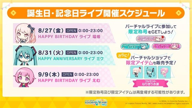■暁山瑞希、初音ミク、鳳えむ誕生日・記念日ライブ開催決定!