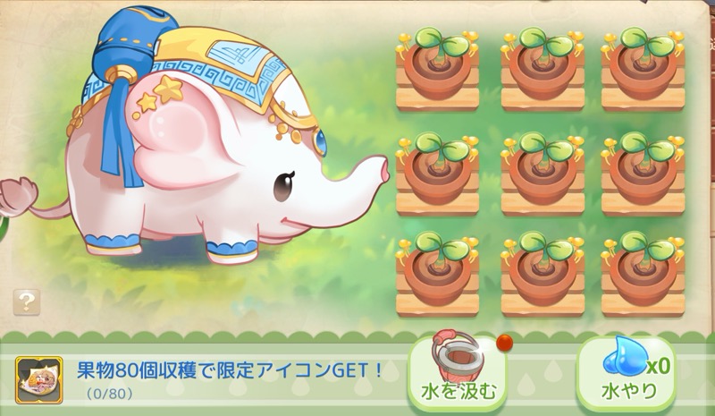 収穫祭は、「水やりクエスト」を達成すると入手できるイベント限定アイテム「わき水」を苗に使用し、育てた果物を収穫するイベント。