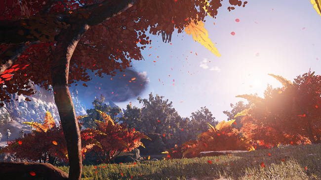 セントラルシティの外では、 木々が紅葉し落ち葉が舞うフィールドに変化します。秋の雰囲気を感じながら、 エアリオ各地を散策しましょう!
