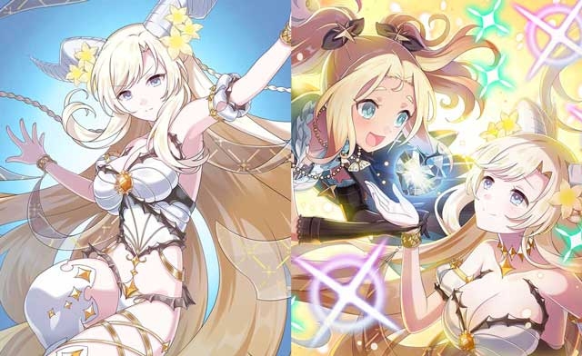 ▲左から「プルメリア」の動く使い魔画像と、 描き下ろしスチルイラストの使い魔画像(全て進化後)