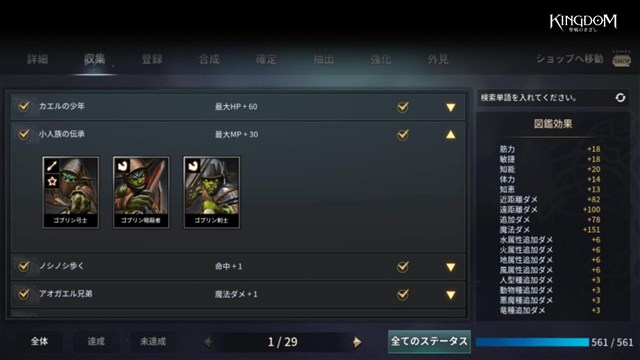 獲得した変身カードで収集のリストで指定されたセットが完成するとさらにステータスが向上する。